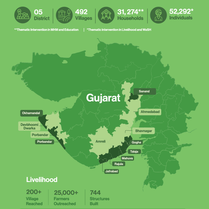 Coastal Gujarat, home to over 1,600 kilometers of shoreline, is one of India’s most salinity-affected regions. Over the decades, the slow ingress of seawater into groundwater and soil has silently eroded the backbone of rural livelihoods. Today, Gujarat accounts for 2.23 million hectares of saline land—the highest in India—leading to an estimated annual agricultural loss of ₹100 billion.